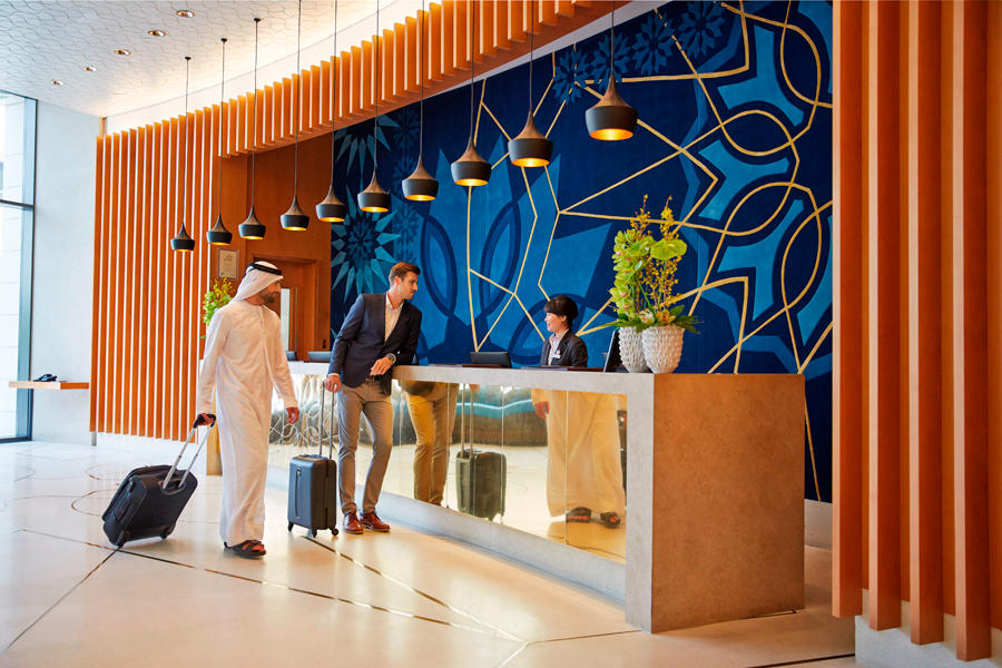 Im Crowne Plaza Yas Island können Sie Ihre Sorgen am Eingang der einladenden Lobby-Lounge fallen lassen und sich am Strand von Cyan entspannen.