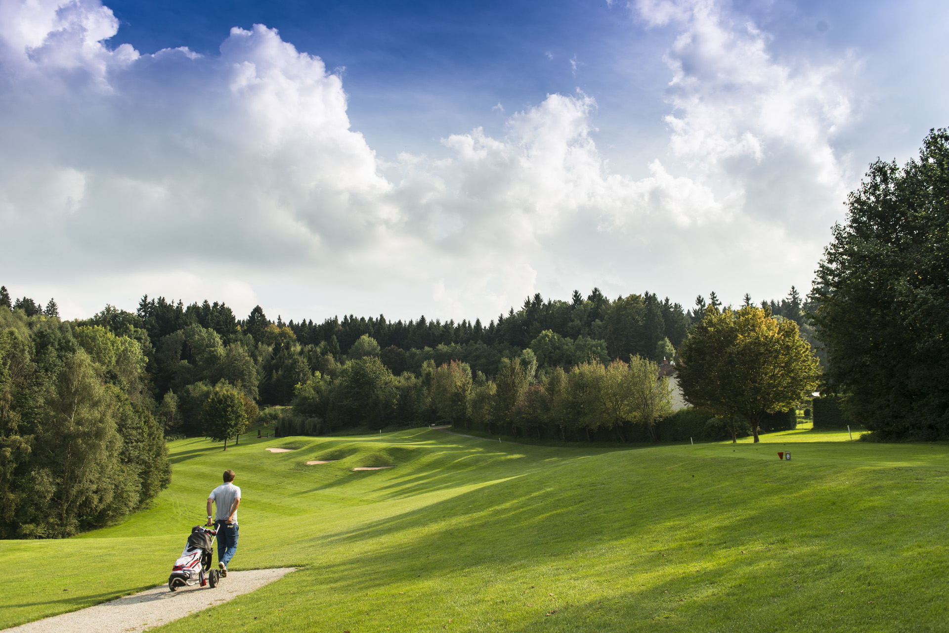 Leicht hügelig, sportlich anspruchsvoll, aber für alle Handicaps spielbar.