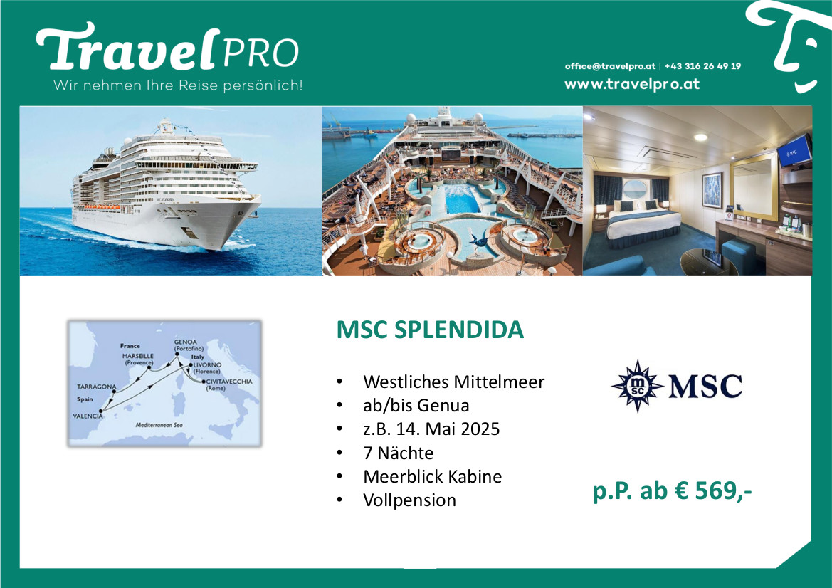 TravelPro ist Ihr Reise-Komplettanbieter und arbeitet mit allen bekannten Reiseveranstaltern und Reedereien zusammen.