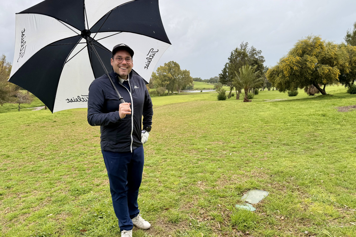 Auf dem besten Weg dorthin ist der dritte Golfplatz in Hammamet, der direkt an den „Citrus Golfclub“ grenzt: Yasmine Golf. Er hat im wahrsten Sinn des Wortes eine bewegte Eigentümer-Geschichte hinter sich und kommt gerade in ruhigeres Fahrwasser. Vor drei Jahren wurde der Club neu übernommen und befindet sich seitdem in einer umfassenden Renovierungsphase: Das Clubhaus (mit tollem Ausblick auf den Platz) ist bereits fertig umgebaut und saniert, neue E-Carts sind in Anlieferung und auch auf dem Platz machen sich die Umbauarbeiten schon positiv bemerkbar. Allerdings braucht es noch ein bisschen Zeit, bis auf den umgebauten Fairways alles gut angewachsen ist. Landschaftlich ist der Yasmine Golfplatz wunderschön gelegen: Mit einem großen See, um den die ersten neun Löcher angelegt sind. Über die zweiten neun Löcher kann ich leider keinen Bericht erstatten, weil mich der orkanartige Wind mit Starkregen zur Aufgabe gezwungen hat. Ein kurzer, aber trotzdem cooler Golfvormittag im Yasmine Golfclub ist so überraschend zu Ende gegangen.